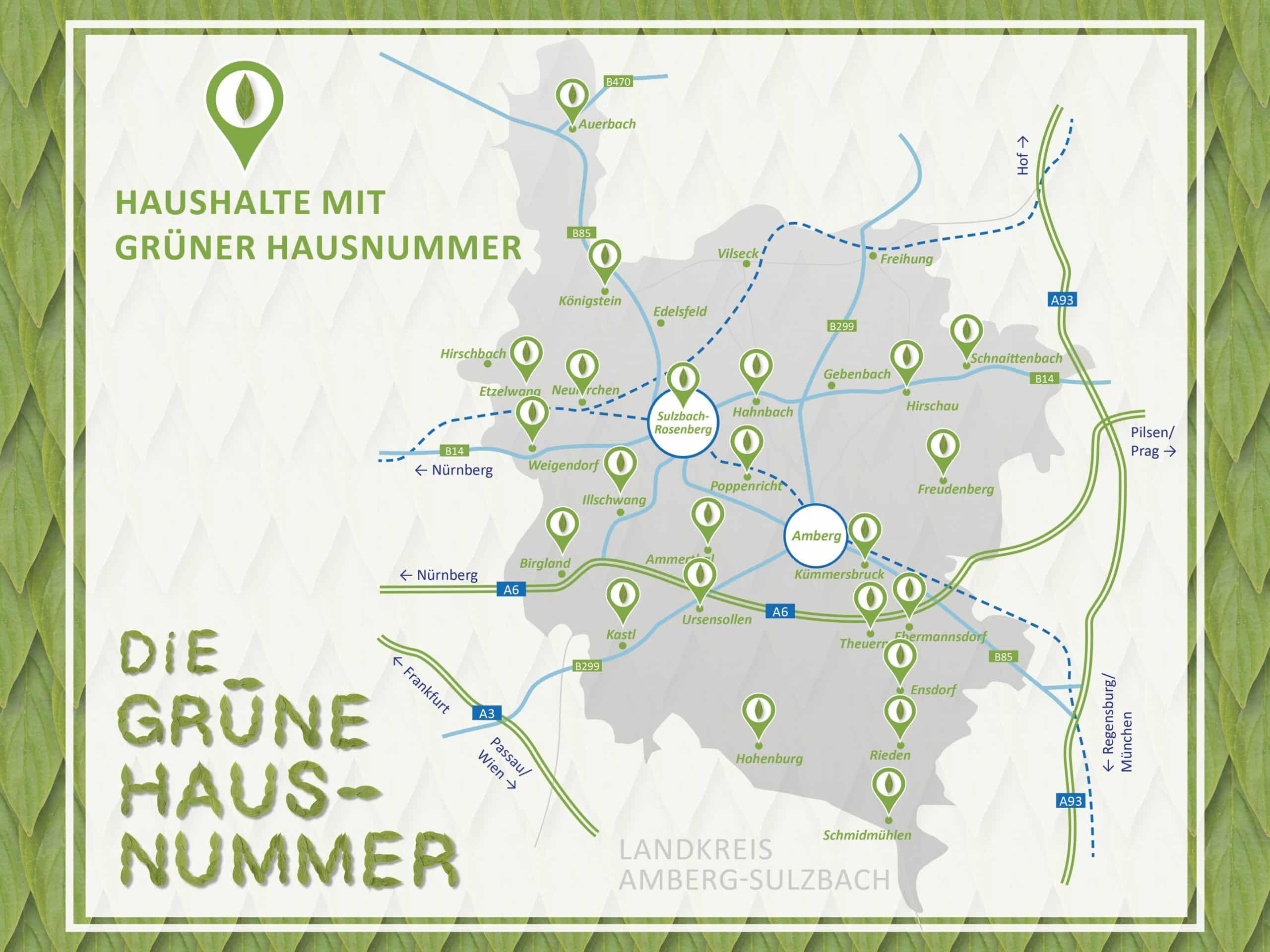 Die „Grüne Hausnummer“ ist ein wertsteigerndes Gütesiegel für Ihr Zuhause, welches vom Landkreis an besonders umweltfreundliche Haushalte verliehen wird. Ziel der Initiative ist es eine nachhaltige Bauweise zu fördern und damit einen Beitrag zum Erhalt unserer Umwelt zu leisten. Jedes Jahr bieten wir allen Haushalten die Möglichkeit sich bei uns für die „Grüne Hausnummer“ zu bewerben.
